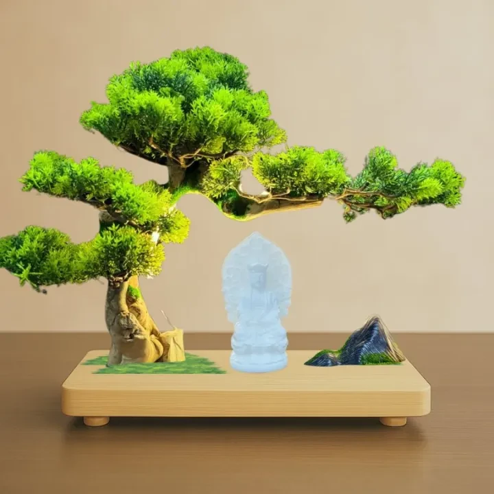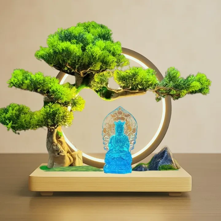 ✅ Thiết kế nghệ thuật: Kết hợp hài hòa giữa tượng gốm thủ công, bonsai giả và đèn LED vòng tạo ánh sáng dịu nhẹ, mang lại cảm giác an yên và thư giãn.