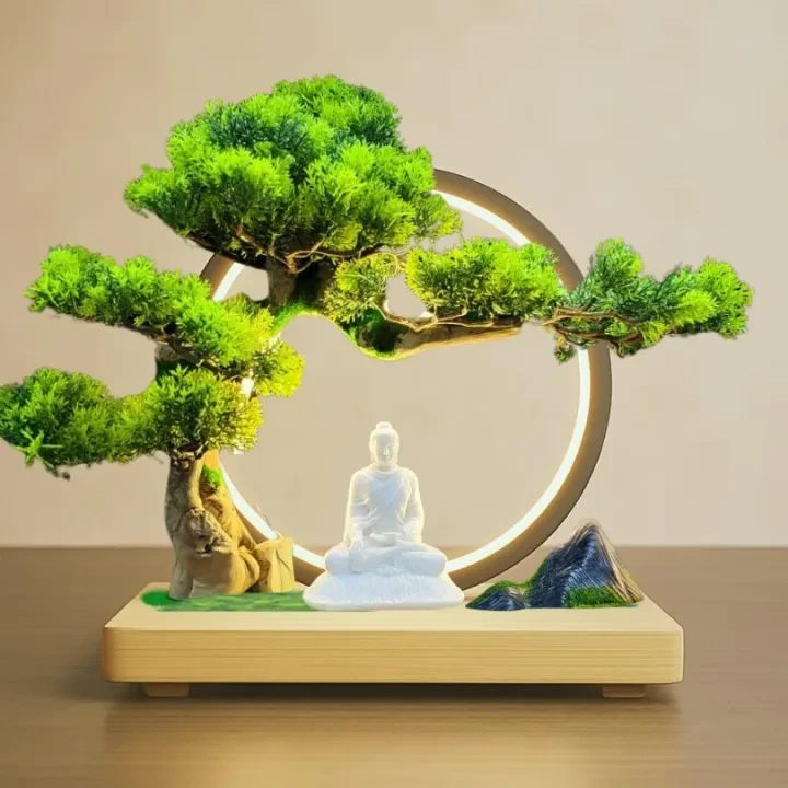 ✅ Thiết kế nghệ thuật: Kết hợp hài hòa giữa tượng gốm thủ công, bonsai giả và đèn LED vòng tạo ánh sáng dịu nhẹ, mang lại cảm giác an yên và thư giãn.