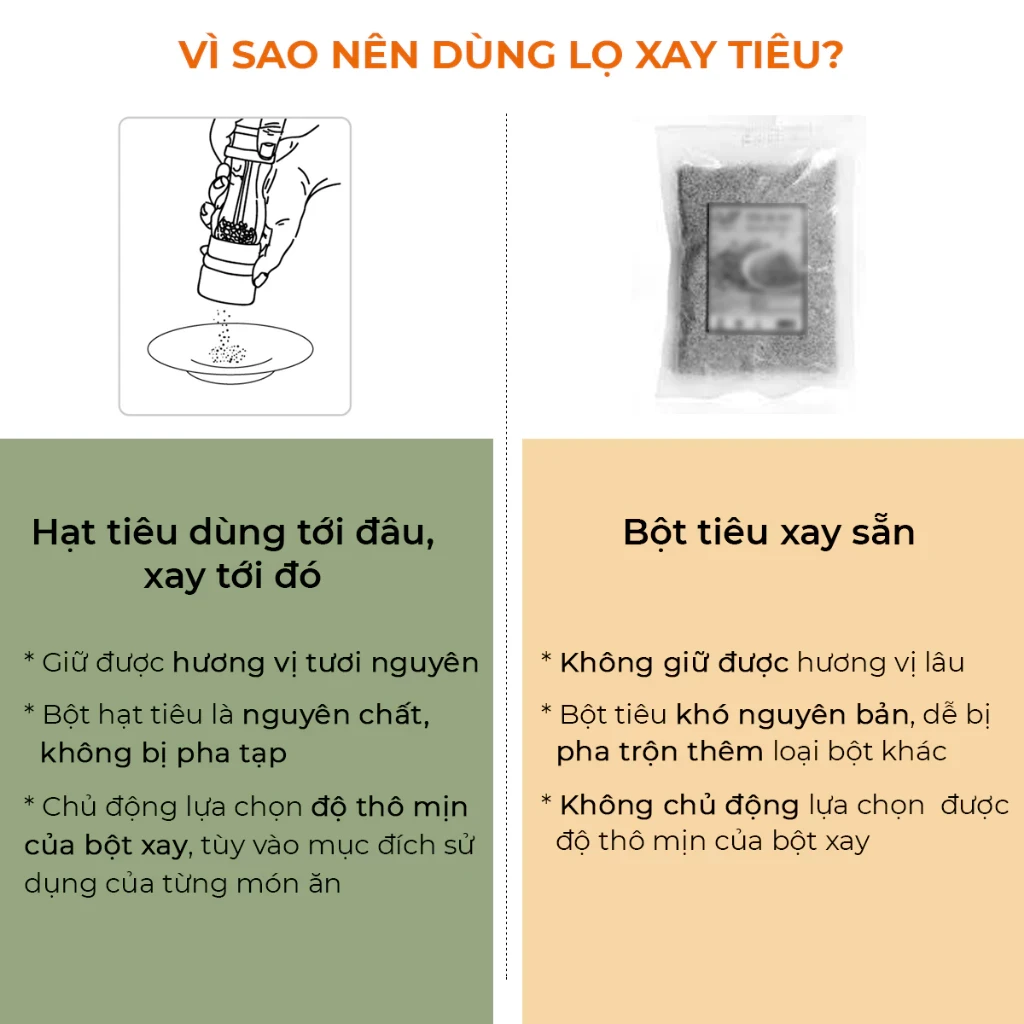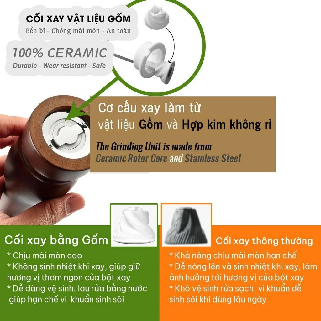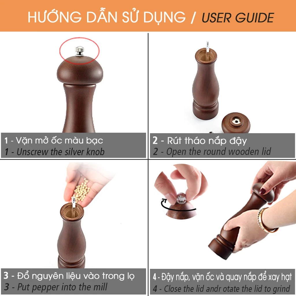 Dụng cụ xay hạt tiêu, gia vị khô bằng gỗ cổ điển sang trọng cho nhà hàng và gia đình | Cối xay hạt tiêu nhà bếp